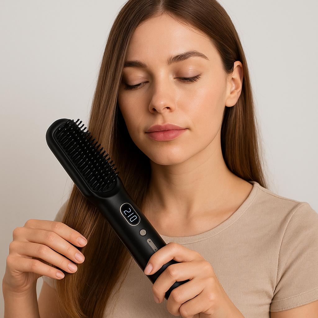 Obtenez des cheveux parfaitement lissés en un instant grâce à la brosse chauffante GlamGo. Compacte, rapide et respectueuse de votre fibre capillaire, elle vous garantit une coiffure impeccable du matin jusqu’au soir—où que vous soyez.
